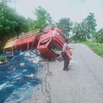 NASIONALINFO.COM – KOLAKA UTARA | Truk bermuatan kaca terguling di pendakian balimbing