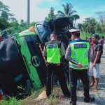 Nasionalinfo.Com, Lasusua – Karena rem blong satu unit truk sepuluh roda terguling