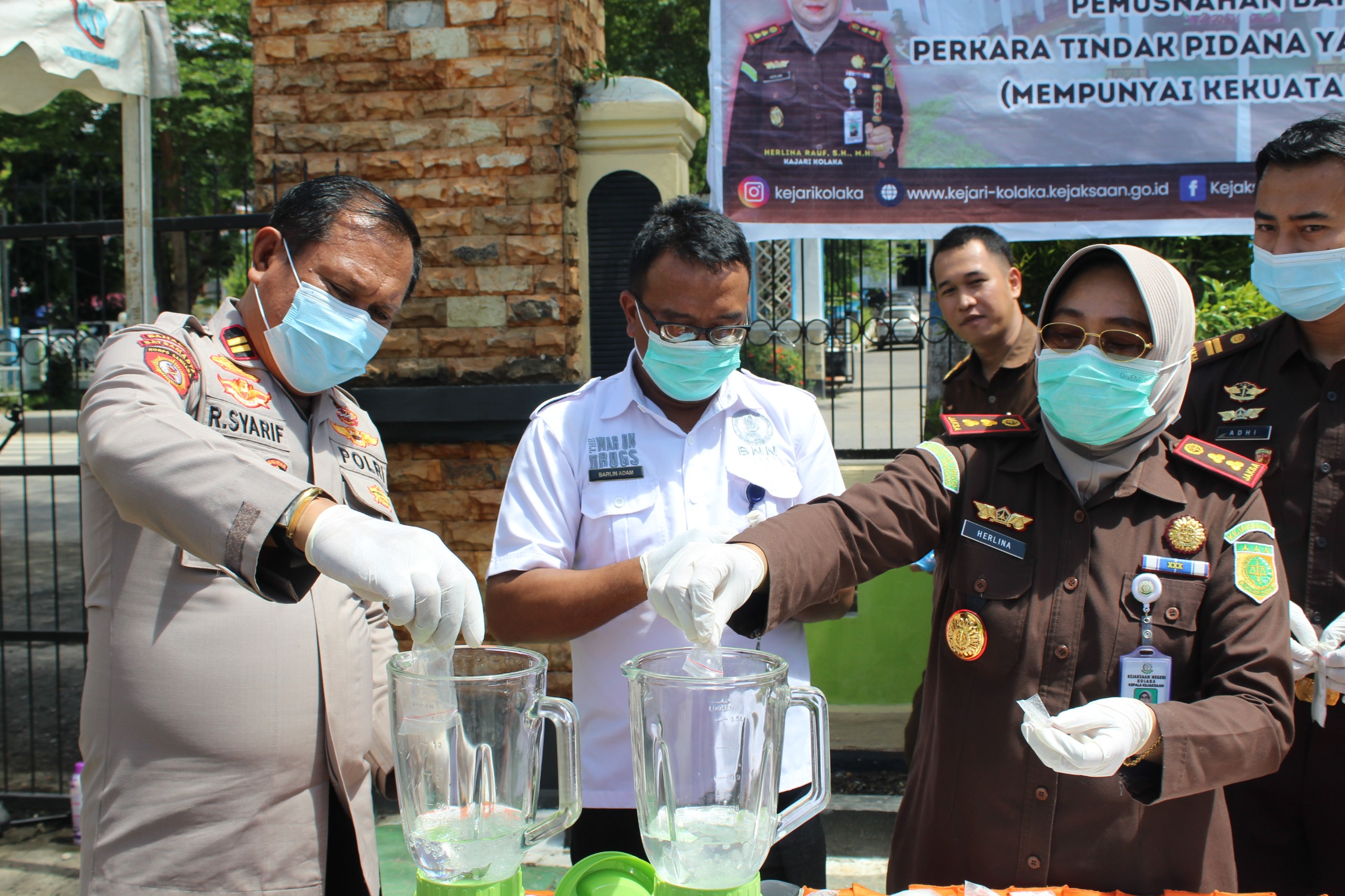 Pemusnahan dilakukan di halaman Kantor Kejari Kolaka dengan metode pembakaran, penghancuran menggunakan gerinda, dan blender.