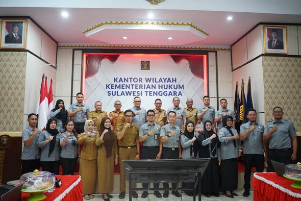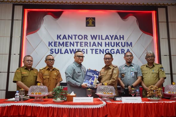 Dalam kesempatan tersebut, Plt. Bupati Koltim H. Yosep Sahaka, S.Pd., M.Pd., hadir bersama rombongan yang terdiri dari Plt. Asisten I Setda Koltim Marwan, S.Sos, Kepala Badan Keuangan dan Aset Daerah Aspian Suute, Kepala Bagian Hukum Setda Koltim Abd. Rahmat Rahman serta staf terkait. Rombongan Pemda Koltim diterima langsung oleh Kepala Kantor Wilayah Kementerian Hukum Sultra, Topan Sopuan, S.Sos., S.H., M.H., beserta jajaran.